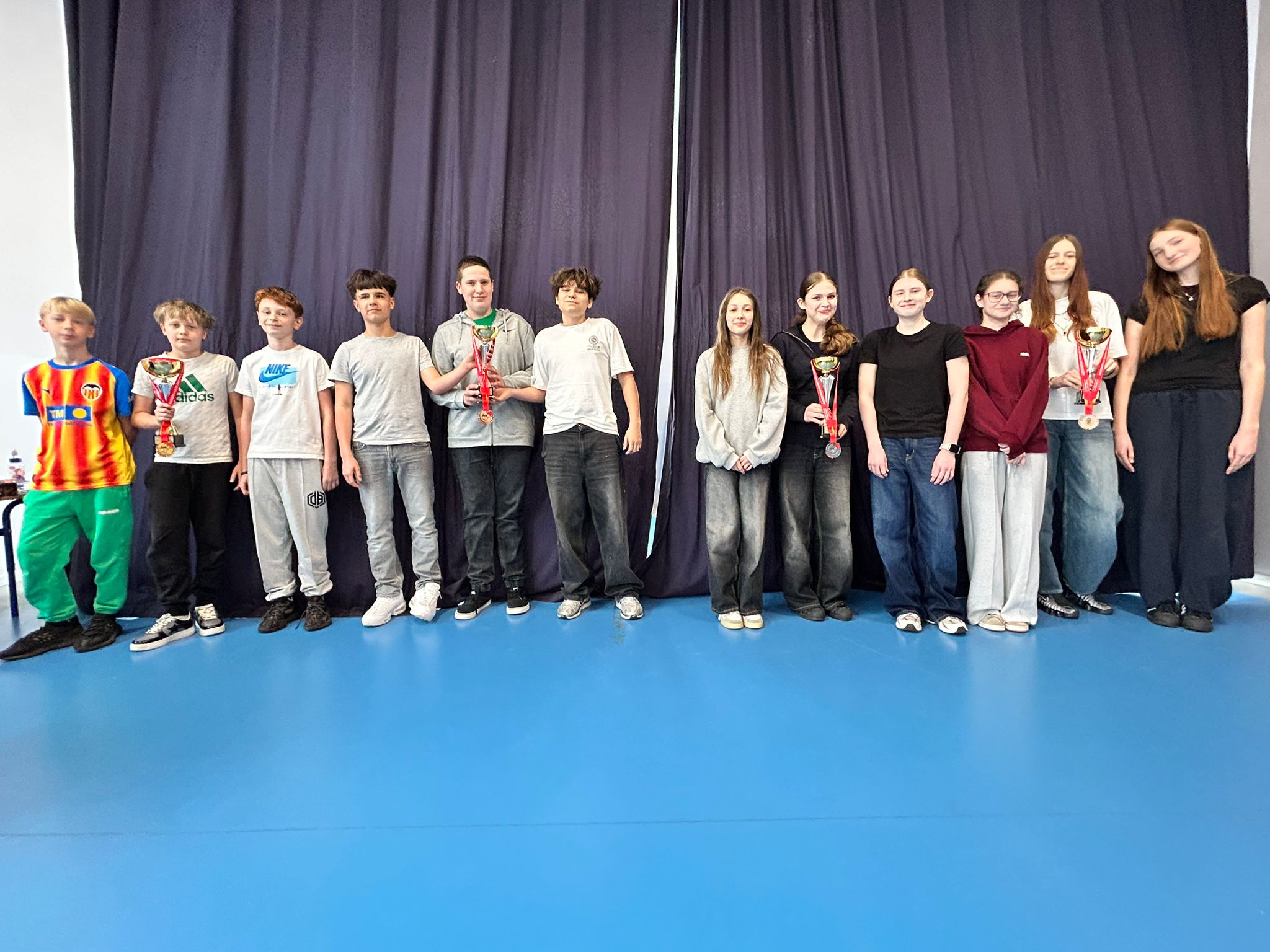 Dużym zainteresowaniem cieszył się także Szkolny Turniej Szachowy, podczas którego uczniowie mieli okazję zaprezentować swoje umiejętności strategicznego myślenia, cierpliwość oraz zdolność przewidywania ruchów przeciwnika. Rozgrywki przebiegały w atmosferze zdrowej rywalizacji, skupienia i wzajemnego szacunku. Nagrodzeni otrzymali medale i pamiątkowe dyplomy.