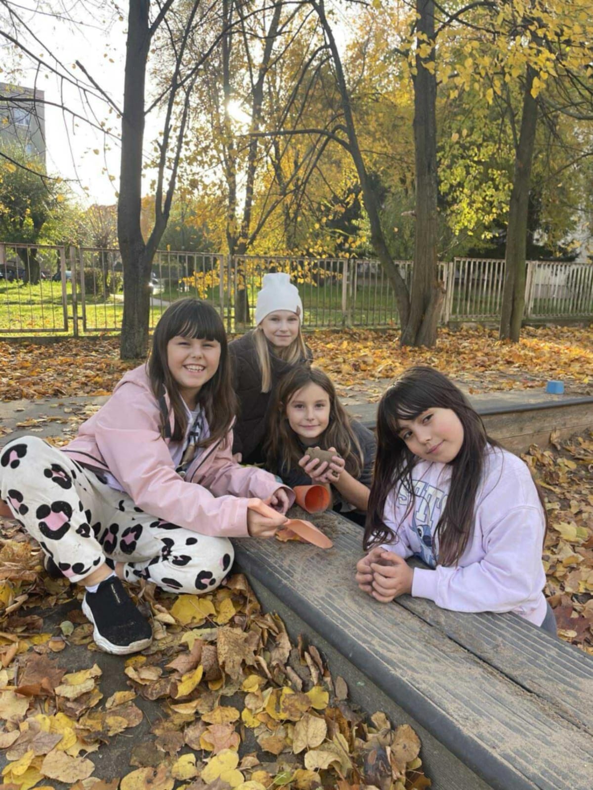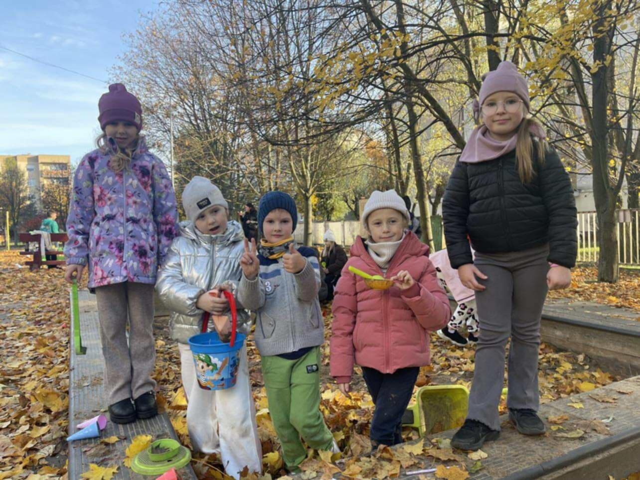 Tegoroczna jesień zaskoczyła nas wyjątkowo ciepłymi dniami października. Korzystając z pięknej pogody, często wychodziliśmy na spacery, by podziwiać barwne liście mieniące się w słońcu odcieniami czerwieni, złota i pomarańczu. Dzieci z radością zbierały kolorowe liście, z których później powstawały w świetlicy jesienne prace plastyczne — wianki i bukiety.
