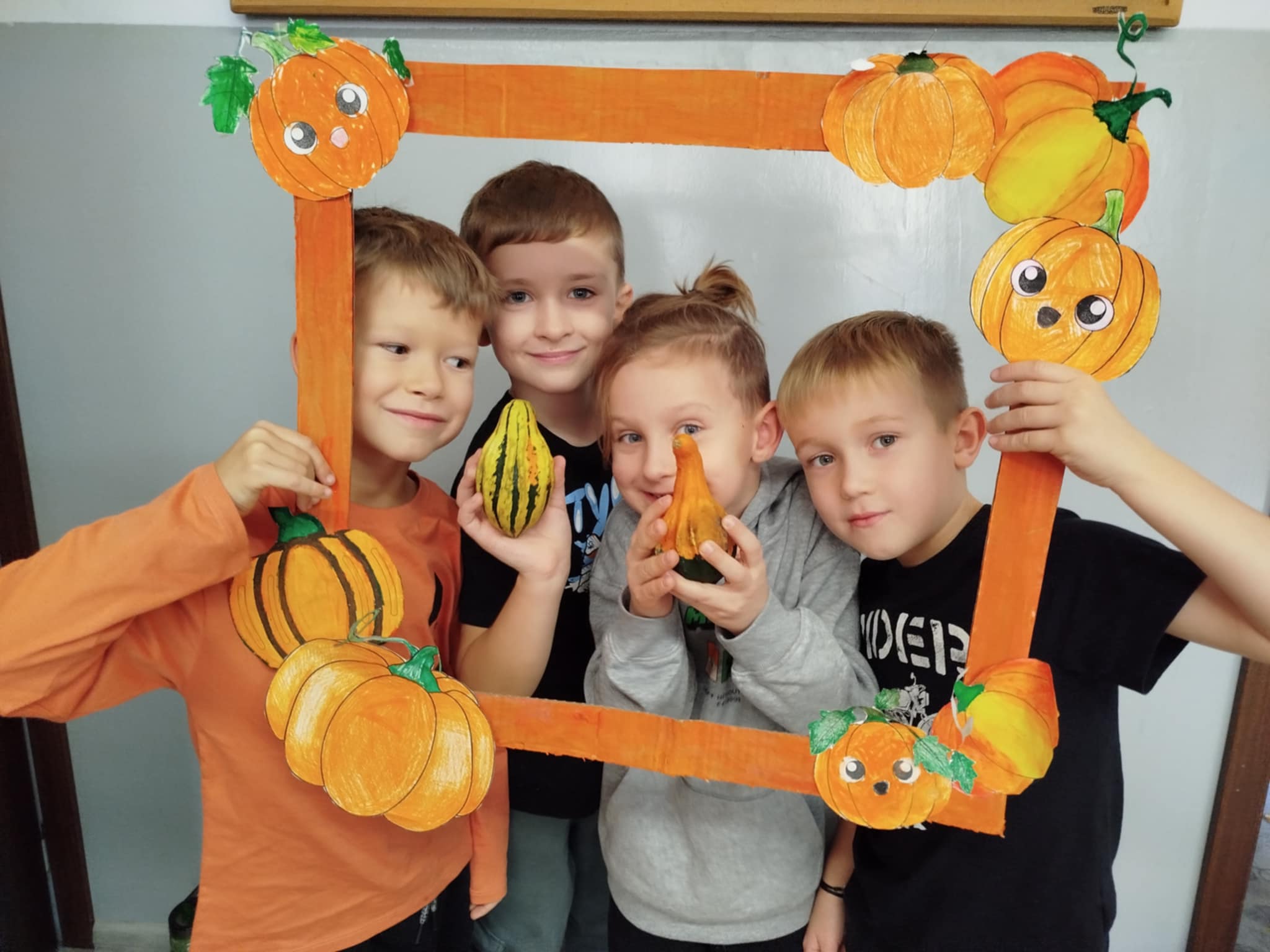 Jednym z naszych jesiennych tematów była dynia –  wyjątkowy dar jesieni. Dzieci wykonywały prace inspirowane tym warzywem – wesołe rysunki oraz zdjęcia w pięknej dyniowej ramce.